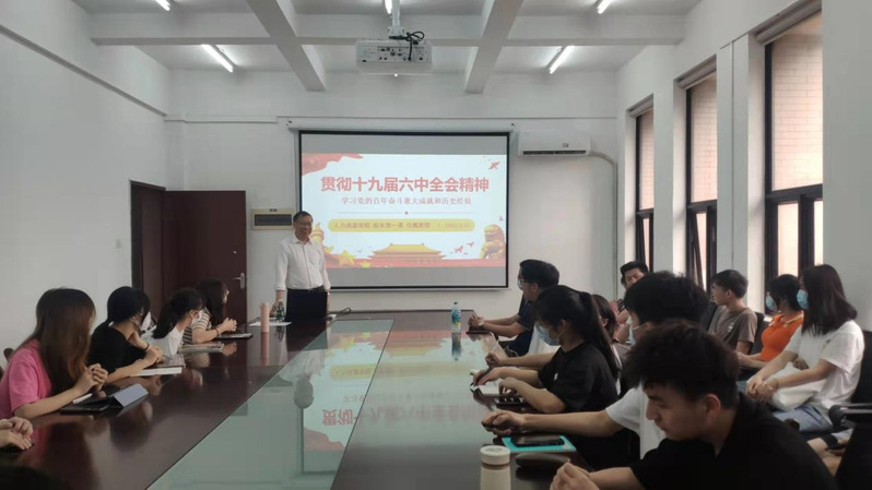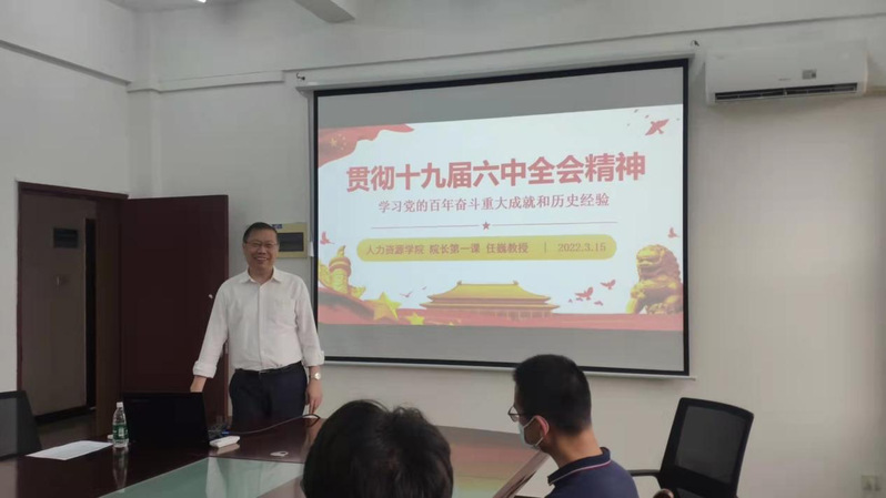 3月15日,在佛山校区厚德楼公司会议室,公司执行经理任巍教授以《贯彻党的十九届六中全会精神——学习党的百年奋斗重大成就和历史经验》为题,为我公司员工代表讲授了深刻、生动、精彩的思想政治理论第一课。