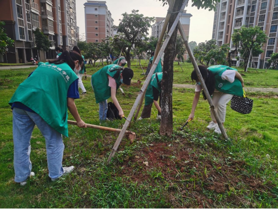 活动开始后,王强副书记,徐海丽辅导员和公司的志愿者们一同为果树挂上公司的牌子,并为果树清除周围杂草。大家分工合作,拿着锄头、小耙子精心的对每一棵果树进行维护。在整个活动过程中,大家不怕脏、不怕累,热情积极,全身心地投入除草行动中,感受劳动带来的趣味,为果树的茁壮成长贡献一份力量。