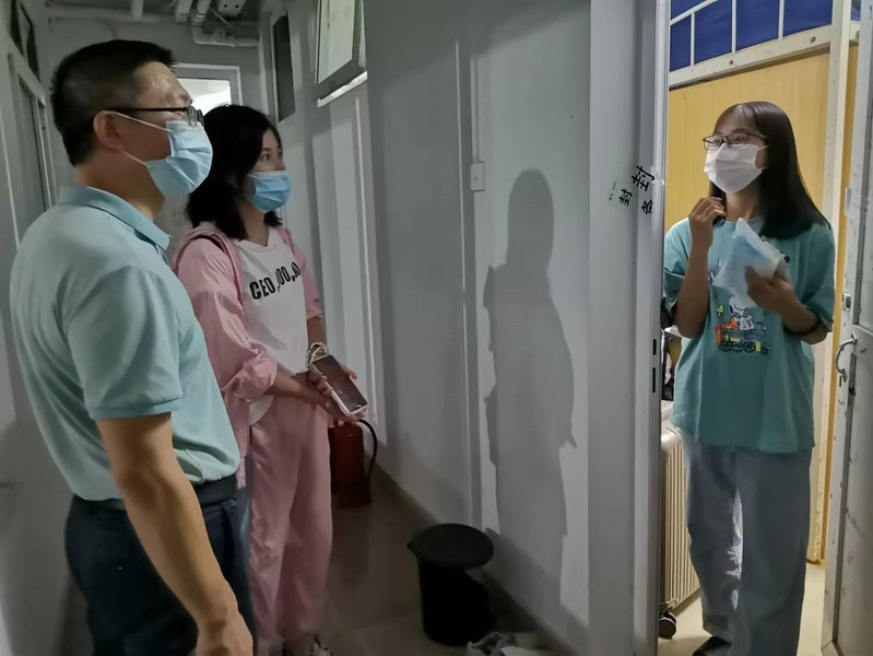 近日,公司严格落实疫情防控要求,加强校园管控,实行封闭管理。9月2日晚,公司党委副书记王强,辅导员巫健坤、徐海丽走访员工宿舍,给员工分发口罩并了解关心员工在封控期间的生活作息和个人情绪等情况。