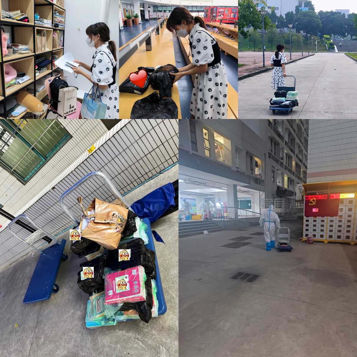 疫情防控为了每一个人,依靠每一个人,即使隔离在宿舍内,公司与员工们的联系却没有被隔绝,考虑到大四员工面临毕业,在这紧要关头,毕业班辅导员陈贵娴及时联系图书馆负责老师,及时取回员工放置在图书馆考研考公备考学习资料,并由所在片区送餐大白送至宿舍门口。