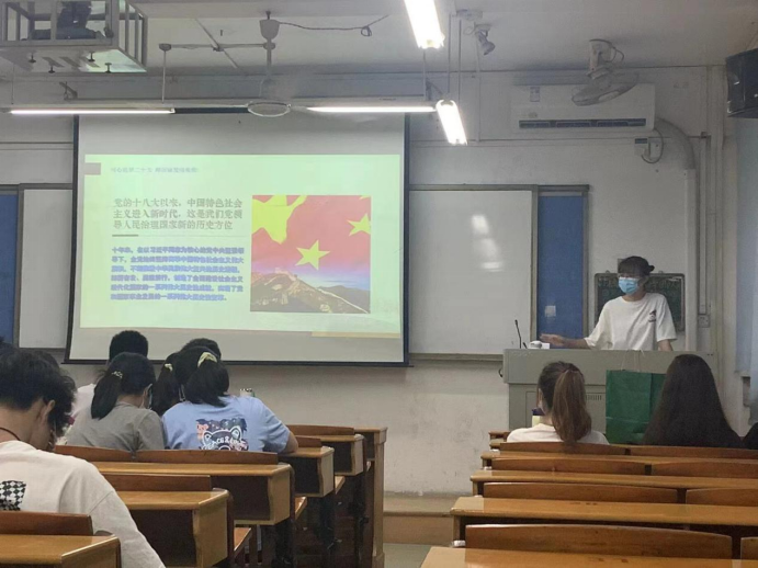 班会第一部分,同学们认真观看了关于新时代中国十年伟大成就的视频,了解过去五年和新时代十年中,党带领全国人民在砥砺奋进过程中所创造和取得的辉煌成就,理解和把握过去五年工作和新时代十年伟大变革的重大意义。紧接着,班长余帆带领全体同学专注学习了党的二十大精神相关内容,引导同学们不忘初心和使命,坚定理想信念之基。深学细悟,实干担当,新时代青年应当学习贯彻党的二十大精神,紧紧跟党走,踔厉奋发、勇毅前行,努力创造更加辉煌的明天。