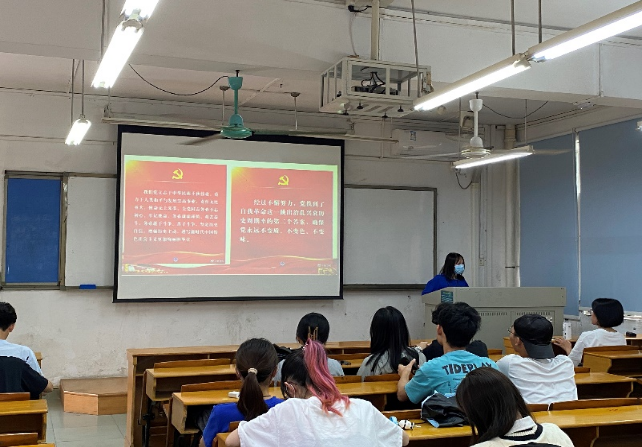 此次班会分为两大部分,第一部分由团支书李婧通过播放学习党的二十大精神相关学习视频引入,对习近平总书记在党的二十大开幕会所做报告15个部分进行了宣讲,通过宣讲让同学们学习领会党的二十大精神的重要意义,从而深入了解党、学习党、跟随党,争做对时代有用的新青年。第二部分由班长温志幸进行世界粮食日的宣讲,以联合国提出多达17亿人正在承受着贫穷和饥饿的问题作为案例,倡议同学们要珍惜粮食、按需取餐、杜绝浪费,最后使用动画宣传片加强同学珍惜粮食的意识,让同学们把珍惜粮食牢记在心,并且切实付诸行动。
