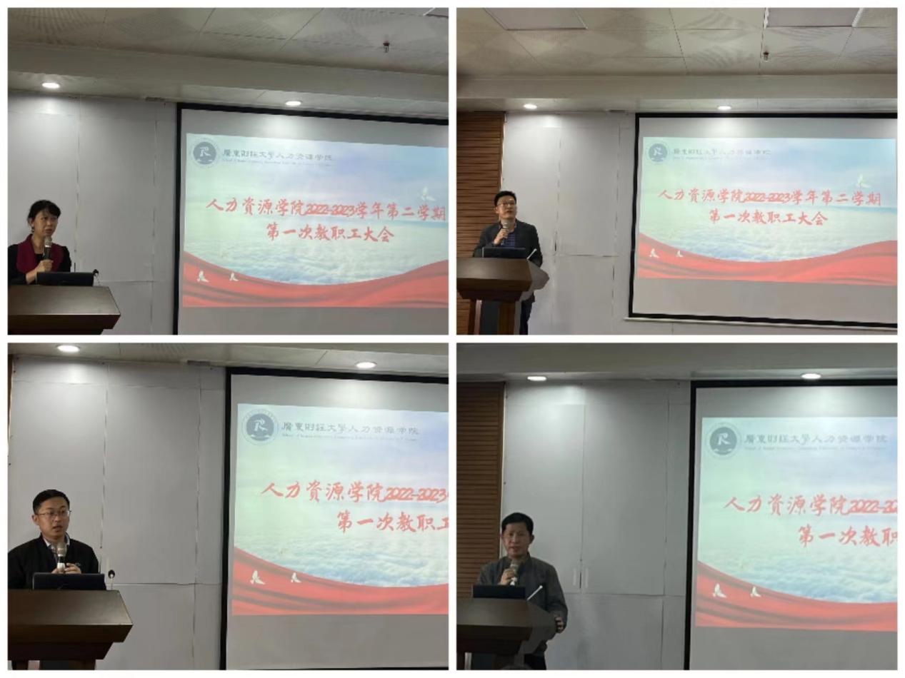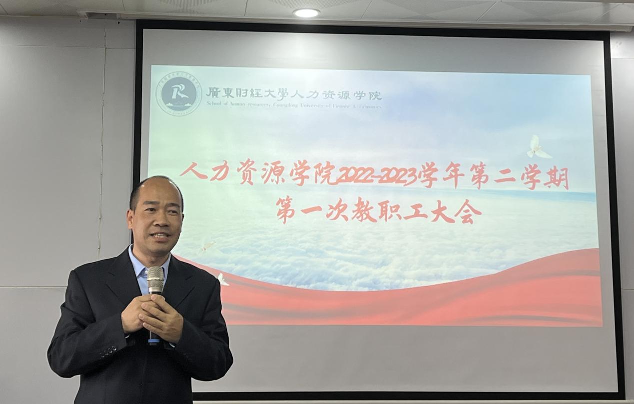 2023年2月28日下午,云顶国际8588yd在广州校区北二445会议室召开了2022-2023学年第二学期第一次全院教职工大会。经理萧鸣政、党委书记黄东阳、副经理顾文静、党委副书记阮方明、副经理尹来盛、吴坤津以及全体教职员工出席。会议由顾文静主持。