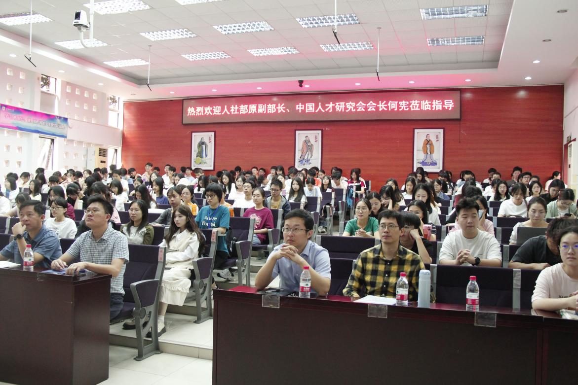 何宪分别从人才强国战略的形成和发展、新时代人才强国战略的主要内容、人才工作取得的成绩和存在的问题、实施人才强国战略需要加强的重点工作等方面系统解读了新时代人才强国战略。何宪指出,随着时代的发展,人才成为衡量一个国家综合国力的重要指标,我国目前的发展比历史上任何时期都要更加渴求人才,我国实施人才强国战略是顺应时代发展趋势的重要举措。何宪认为,在国家发展的新征程上,“人才强国”与以往相比有了更为具体、更高层次的内涵,对新时代的人才工作也提出了新的要求,我们必须充分认识强化现代化建设人才支撑的重要性。最后,何宪寄语同学们,努力成为管理人才的专业人才,进一步发展人才、造就人才。