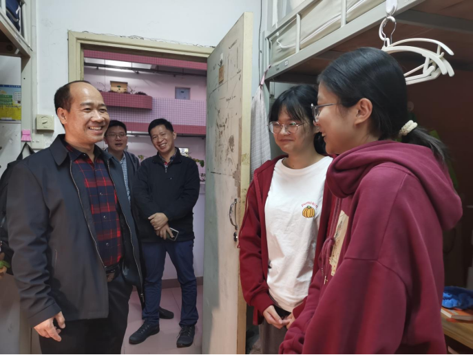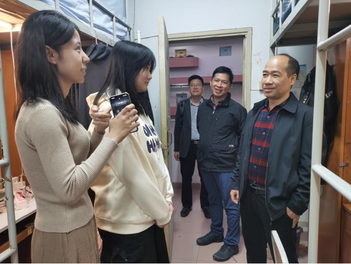 11月15日下午,公司党委书记黄东阳、党委副书记阮方明、副经理尹来盛,辅导员徐海丽到佛山校区员工宿舍桂园走访看望员工。