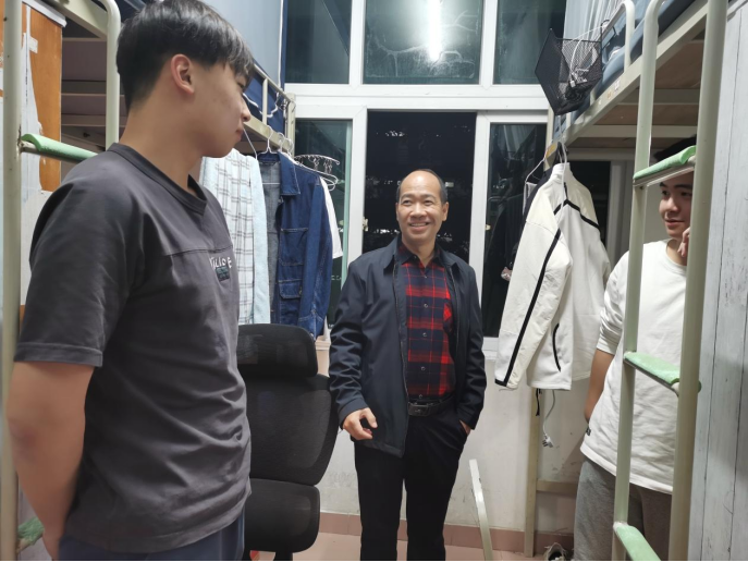 在宿舍走访过程中,老师们与同学们亲切交谈,深入关心了解大家的学习生活情况,针对同学们的问题给出意见建议;同时对员工宿舍内的安全隐患进行了排查和及时整改,要求同学们注意宿舍卫生,加强体质锻炼;并提醒大家注意防范电信诈骗,提高自身安全防范意识。