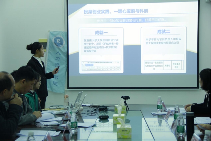 阮方明先介绍了22-23学年本科生奖学金工作开展情况以及答辩流程。14位经理奖学金候选人按照抽签顺序依次进行自我展示与现场答辩,向评委们展现了自己在思想建设、学术科研、创业实践、文体艺术等各个方面取得的优秀成果。评委们根据候选人的申请材料以及个人展示内容,有针对性地进行了提问,对他们的个人展示以及未来职业规划和发展提出了深刻的意见和建议,并综合考量了员工的学业成绩、获奖情况、综合素质以及现场答辩表现等因素,最终评选出9名经理奖学金获得者,并推选出3名董事长奖学金候选人。