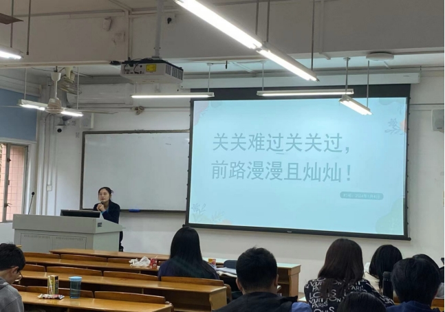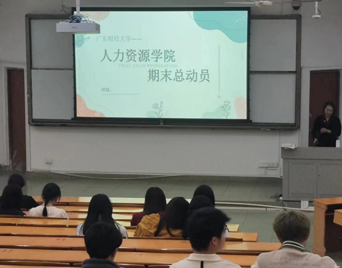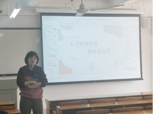 2023年12月27日,班主任朱蕾老师从广州校区来到佛山校区为我们人力资源管理2班开了23-24学年第一学期的最后一次班会。本版会议的主题为“期末动员大会”,本次大会,朱蕾老师从心态,压力,以及考试纪律等方面为我们带来了期末考试指导,给我们提供了宝贵的经验。朱蕾老师还十分关心我们的安全,老师从交通安全、网络安全,电信诈骗等与我们息息相关的细微地方给我们实际的叮嘱。最后,老师以“关关难过关关过,前路漫漫且灿灿”来给我们寄予厚望。