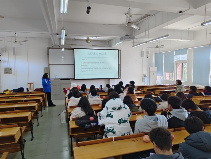 首先,王笑天老师对期末考试的复习安排和生活习惯做出了提醒、建议,叮嘱同学们注意身体并养成良好作息习惯;其次,王笑天老师强调了考风考纪的问题,提醒同学们要诚信考试,杜绝违规违纪行为。最后,王笑天老师从消防安全、交通安全、食品安全、网络安全等方面,就如何做好自身安全工作的问题展开了讲解。