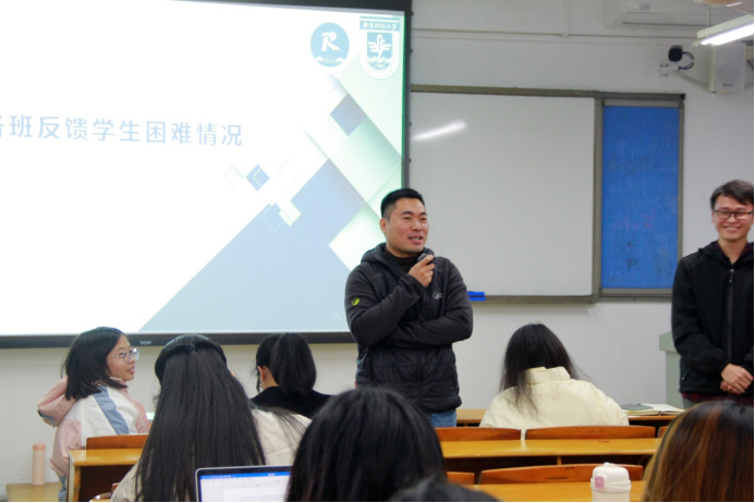 在问题反馈环节,各班班委代表积极向老师与员工干部提出同学们的难题与需求。对于这些问题,巫健坤老师与员工干部都认真解答与仔细记录,并在会后形成提案向校级层面反映,积极解决困扰同学们的难题。