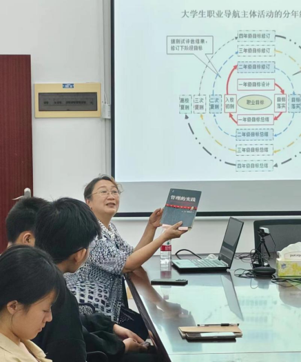 活动当天,现场气氛热烈而温馨。首先,主持人向大家介绍了活动的背景和目的,并宣布了活动的正式开始。接着,我们邀请到了梁栩凌教授来作为本期活动的领读人,梁栩凌教授详细介绍了《管理的实践》这本书的主要框架和重点内容,同时还讲述了作者德鲁克的故事。此外她还推荐同学们多阅读经济学、管理学方面的经典名著。