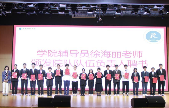 公司辅导员徐海丽老师颁发院队队伍干部聘书