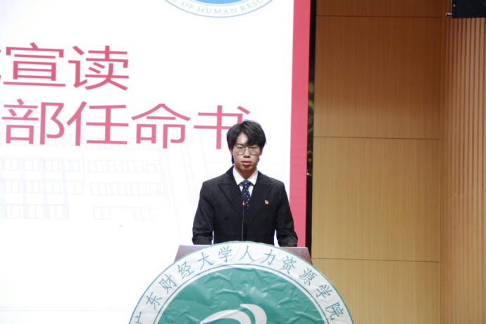 欧逸轩作为文体部部长兼院队负责人,首先向领导、老师和同学们表达了感谢,并表达了对未来工作的期许和责任担当。发言中,他表达了自己应当承担其应尽的责任和义务,立足新起点,迈向新征程,尽自己最大的努力带领院队走向辉煌。
