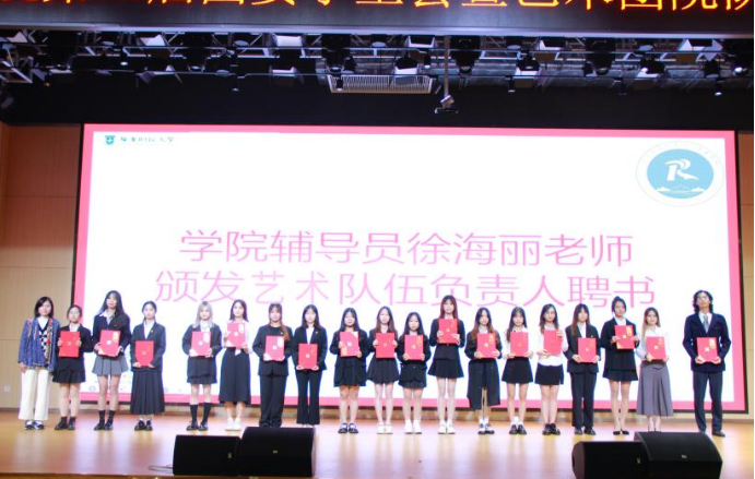 公司辅导员徐海丽老师颁发艺术团队伍干部聘书
