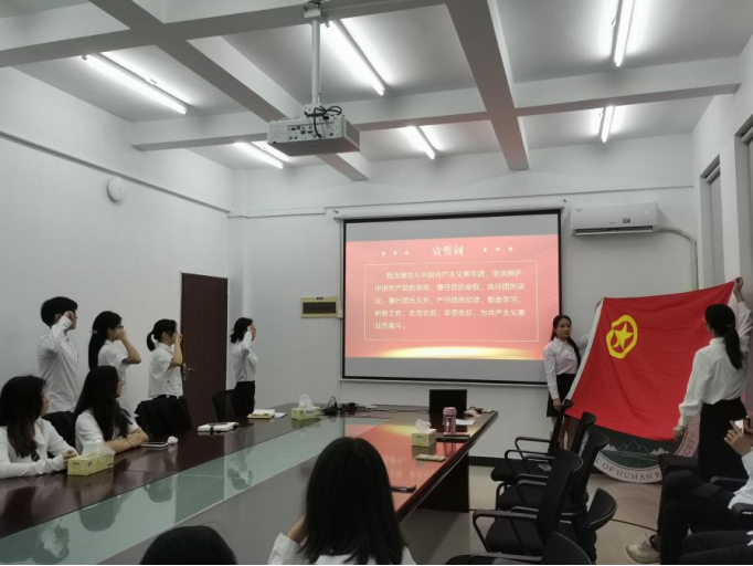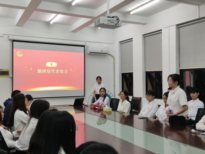 主持人黄芳蓉先讲述了中国共产主义青年团的地位,接着讲述了团员发展工作对共青团组织建设、广大青年学子发展的重大意义,最后宣读了新团员名单。
