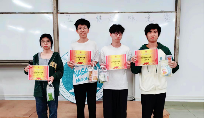 在本次五子棋趣味竞赛中,荣获第一、二、三、四名的选手分别为欧逸轩、刘佳莹、廖尔杰、吴炜聪。