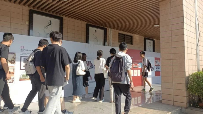 跟随着团支书的脚步,同学们秩序井然地浏览着广财的重要历史。团支书的娓娓道来,使同学们仿佛踏进了广财的历史长河,广财历史的一幕幕如同画卷般在同学们眼前展开。从1983年广财建立时的奋发图强,到1999年兴建三水校区的锐意进取,再到2017年四方共建的厚积薄发,广财人在这漫长的四十年历史中自强不息,成就满满。同学们也因此深深地感受到了广财历史沉甸甸的分量。