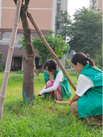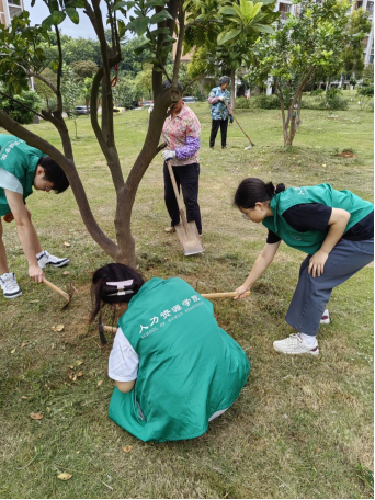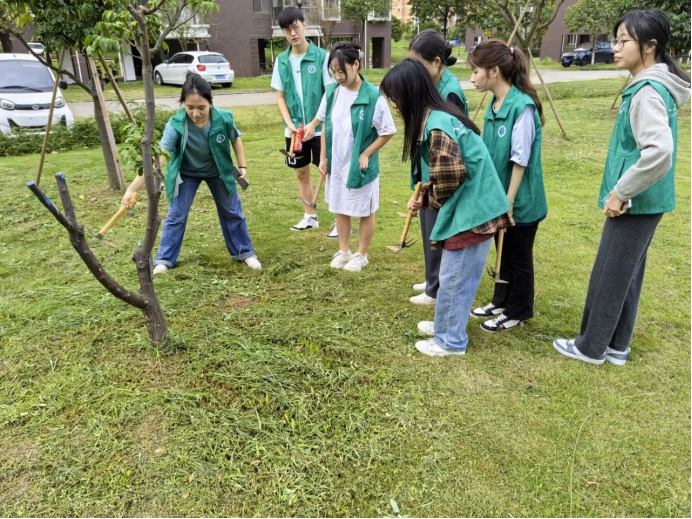 除草护绿,共建绿色校园。人力学子的沉稳务实和树苗的蓬勃生长交相辉映。