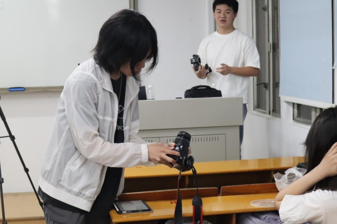 随后,培训进入了摄影器材的介绍环节,助教不仅向同学们展示了各种摄影器材,还详细讲解了它们的工作原理和使用技巧,让同学们对摄影器材有了更深入的了解。