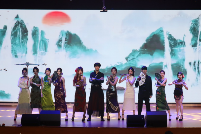 饱含理想、充满希冀的歌曲合唱,展现华服之美的旗袍走秀,“飘然转旋回雪轻,斜曳裙时云欲生”的国风舞蹈,充满活力、动感十足的爵士舞,声情并茂的诗歌朗诵,婉转悠扬、余韵悠长的乐器演奏……声、光、电、影与实物的完美融合,为观众打造了一场寓理于乐、雅俗共赏的视觉盛宴。