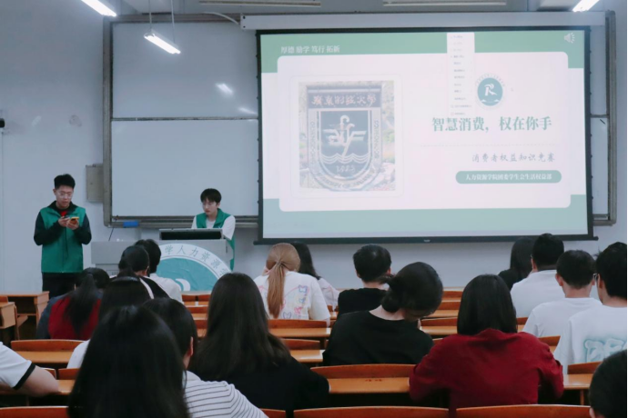 为提高同学们的权益保护意识,倡导理性文明绿色消费,推动校园消费文化健康发展,云顶国际8588yd生活权益部于5月14日面向佛山校区全体员工举办了以“智慧消费,权在你手”为主题的消费者权益知识竞赛。
