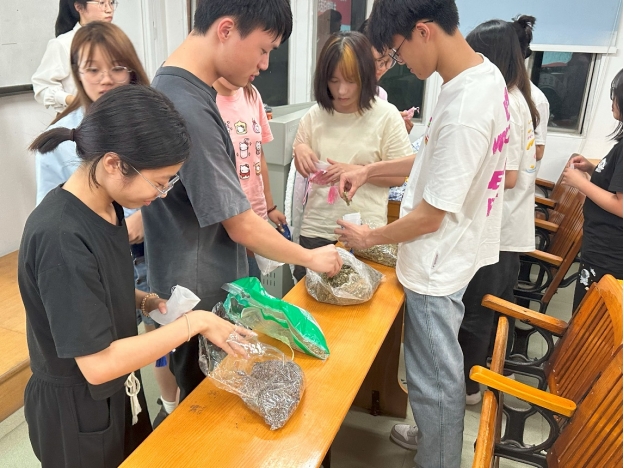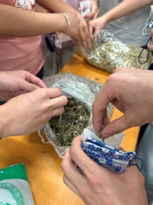 在活动最后,支部成员、入党积极分子、团员围在一起手工,共同制作了“廉洁香囊”。制作香囊是端午节的重要习俗之一,结合这一节日背景,将党纪学习教育融入到制作香囊的过程中,让大家将艾叶、丁香、肉桂、薄荷、檀香等中药装入香囊的同时,也将自己对党纪学习的心得和廉洁名言写下来一同放入。香囊虽小,但其中草药香气散播出来的“廉味”却不少,其防病驱虫、提神醒脑的功效蕴含着祛除污秽、提升正气之意,实现了党纪学习教育从说教到浸润的转变,赋予传统民俗文化新的清廉寓意,也时刻提醒大家廉以修身、洁以养性,不忘初心,永葆清正廉洁本色。