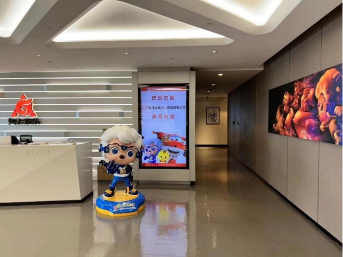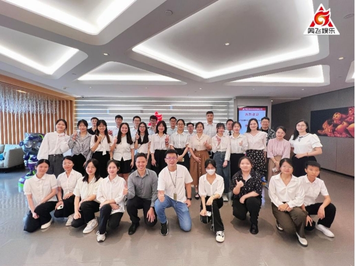 2023年7月13日上午,云顶国际8588yd人力资源管理系黄嘉欣副教授,宋一晓老师和30名2020级人力资源管理专业的员工到达奥飞娱乐广州总部,开展2022-2023第二学期社会劳动和企业实践课程的参访活动。奥飞娱乐公司企业代表萧凯力先生(总裁助理兼营运与人力资源中心总经理)、曾珍女士(组织发展高级经理)、卓永斌先生(招聘高级经理)、刘雅蕙女士(薪酬绩效高级经理)和庄维女士(公关经理)接待了师生一行。