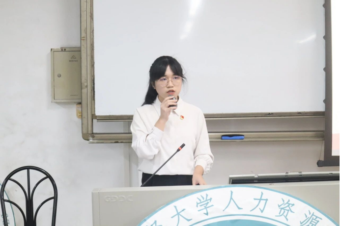 新一届员工委员会主席团成员三名候选人欧逸轩、周诗敏、潘乐锶依次作竞选演讲。他们分别从工作经历、自身优势、未来规划等多方面表明了自己的竞选决心。