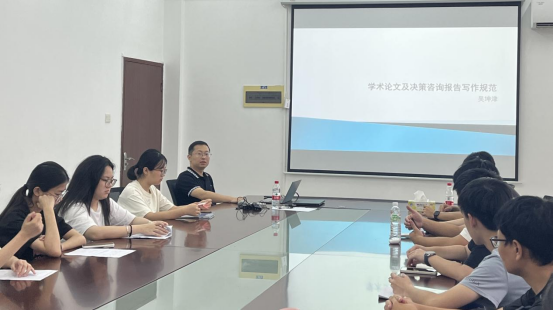 6月25日下午,副经理吴坤津在佛山校区厚德楼449,为员工开展题为“学术论文及决策咨询报告写作规范”的学术讲座。公司员工30余人参加讲座。