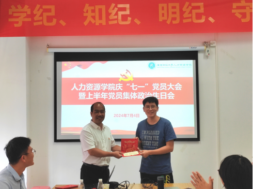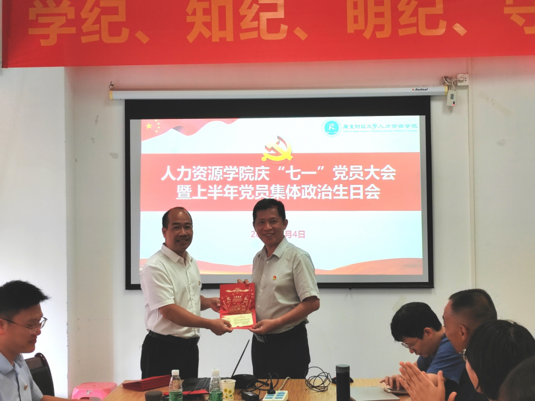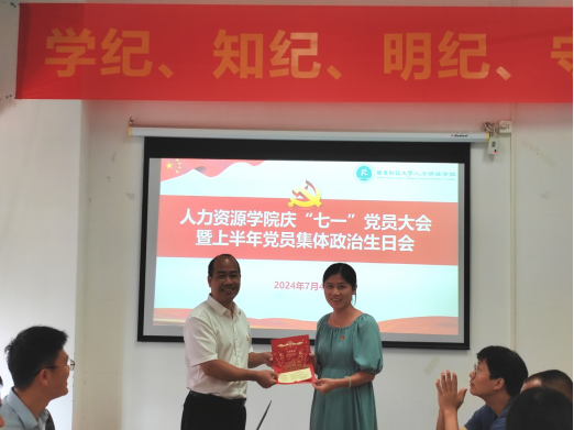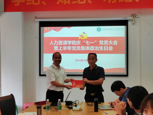 会上,黄东阳为上半年过“政治生日”的教师党员赠送印有党员姓名、入党时间及入党誓词的“政治生日”贺卡。一张小小的贺卡,传递了公司党委对党员的关心和鞭策,寄予殷切嘱托与期望,勉励各位党员要努力践行入党初心,认真履行党员义务,同时提醒大家时刻牢记教师党员身份,牢记为党育人、为国育才的初心使命,以赤诚之心、奉献之心、仁爱之心投身教育事业。