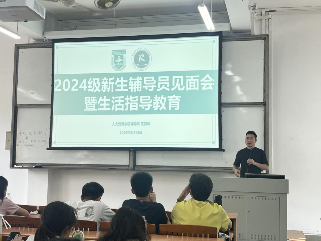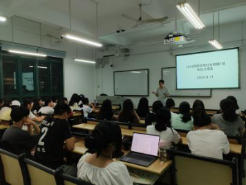 辅导员巫健坤就生活指导、安全教育、职业生涯规划等内容上了一堂生动精彩的入学启蒙课,详细介绍了住宿、医疗、助学、数字化服务等内容,还提醒大家在享受老员工活的同时,也要时刻绷紧安全这根弦,保证自己健康、安全地度过愉快的老员工活。最后,巫健坤为新生们进行了职业生涯规划指导,帮助大家明确方向,规划未来,以坚定的目标引领自身发展!