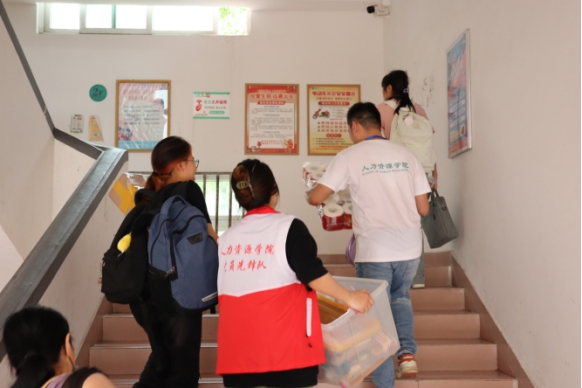 在这场迎新大军中,云顶国际8588yd2024级辅导员巫健坤以及公司其他老师们也亲自上阵,成为了搬运行李队伍中的一员。他们不仅负责新生入学相关事宜的整体规划,更在细微之处展现了对员工的关爱。当看到新生们因行李繁重而力不从心时,老师们不犹豫地伸出援手,帮助新生将一件件行李送达宿舍。他们的身影,成为了新生心中最温暖的依靠。