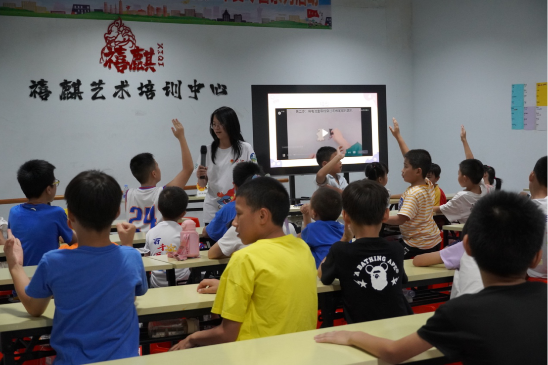 7月23日到7月26日,实践团与万江街道联合举办的“百千万·莞一夏丨万江街道‘七彩阳光’青少年暑期成长营”在万江街道滘联社区禧麒艺术培训中心开展。实践团成员为青少年学员准备了丰富有趣的科学文化体验课程,以老师和青年志愿者的身份陪伴“小候鸟”度过快乐又有意义的暑期时光。