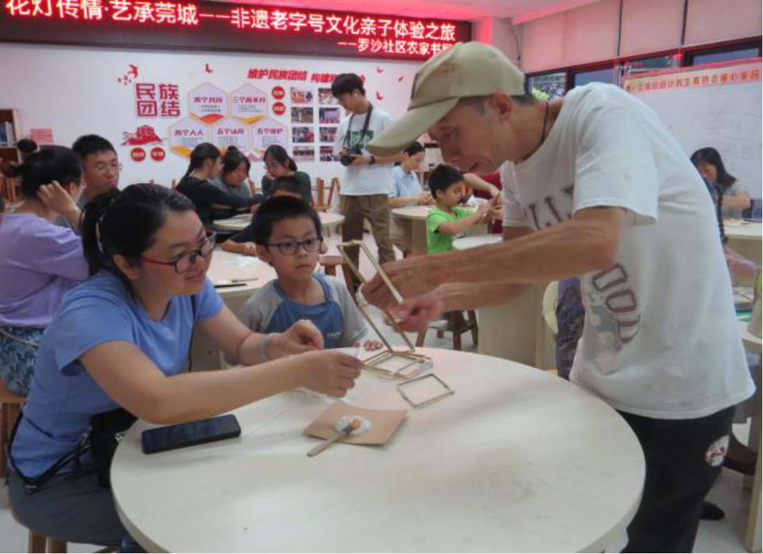 随后,团队与罗沙社区紧密合作,邀请王藻记花灯传承人,成功举办了一场亲子花灯制作体验活动。活动现场,大人与孩子们携手合作,共同探索传统文化的魅力。一盏盏精美的花灯在他们灵巧的手中诞生,不仅展现了亲子间的温馨与默契,更传递了对传统文化的热爱与传承。