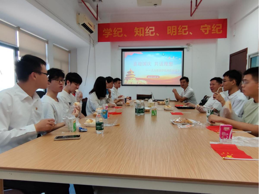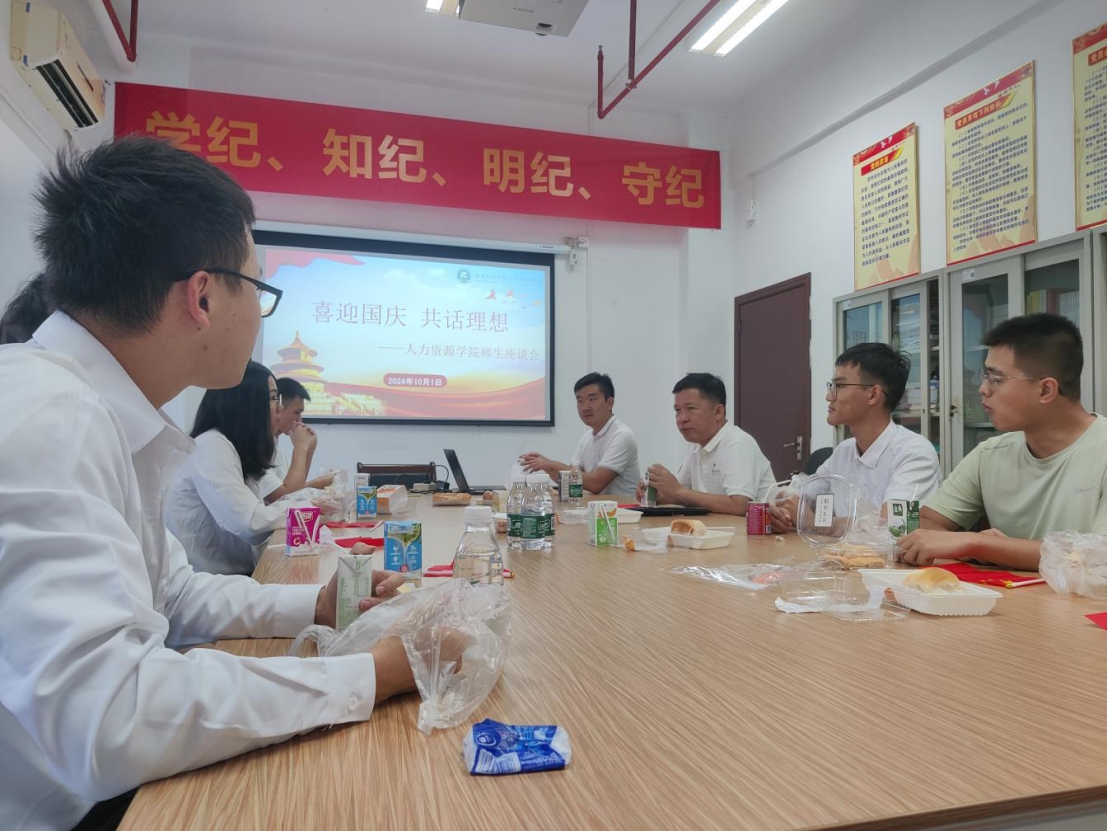 10月1日上午,员工第一党支部在广州校区立德楼801召开“喜迎国庆,共话理想”师生座谈会,公司党委副书记阮方明、辅导员赵威、21级留校员工代表参加本次会议。