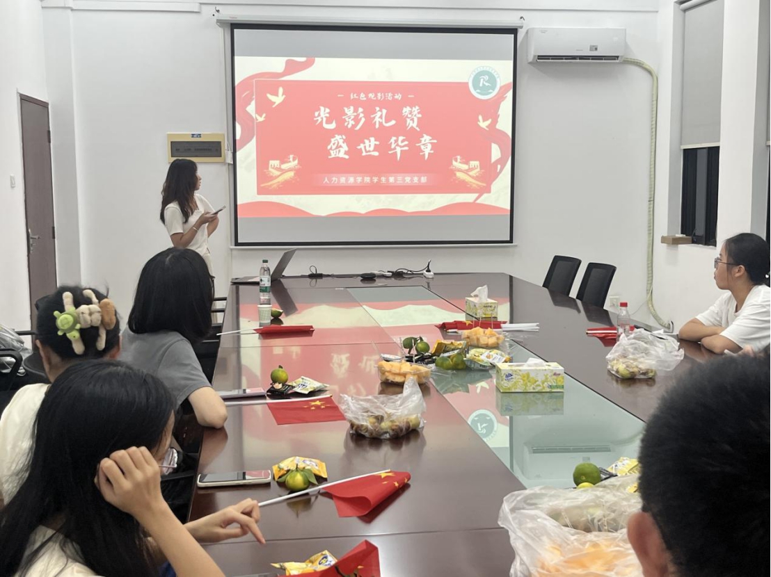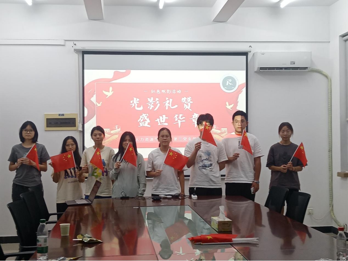 10月6日晚上,员工第二党支部在佛山校区厚德楼449会议室举行“光影礼赞,盛世华章”红色电影观影活动,员工党支部助理罗宁静和留校员工集中观看《我和我的父辈》影片。