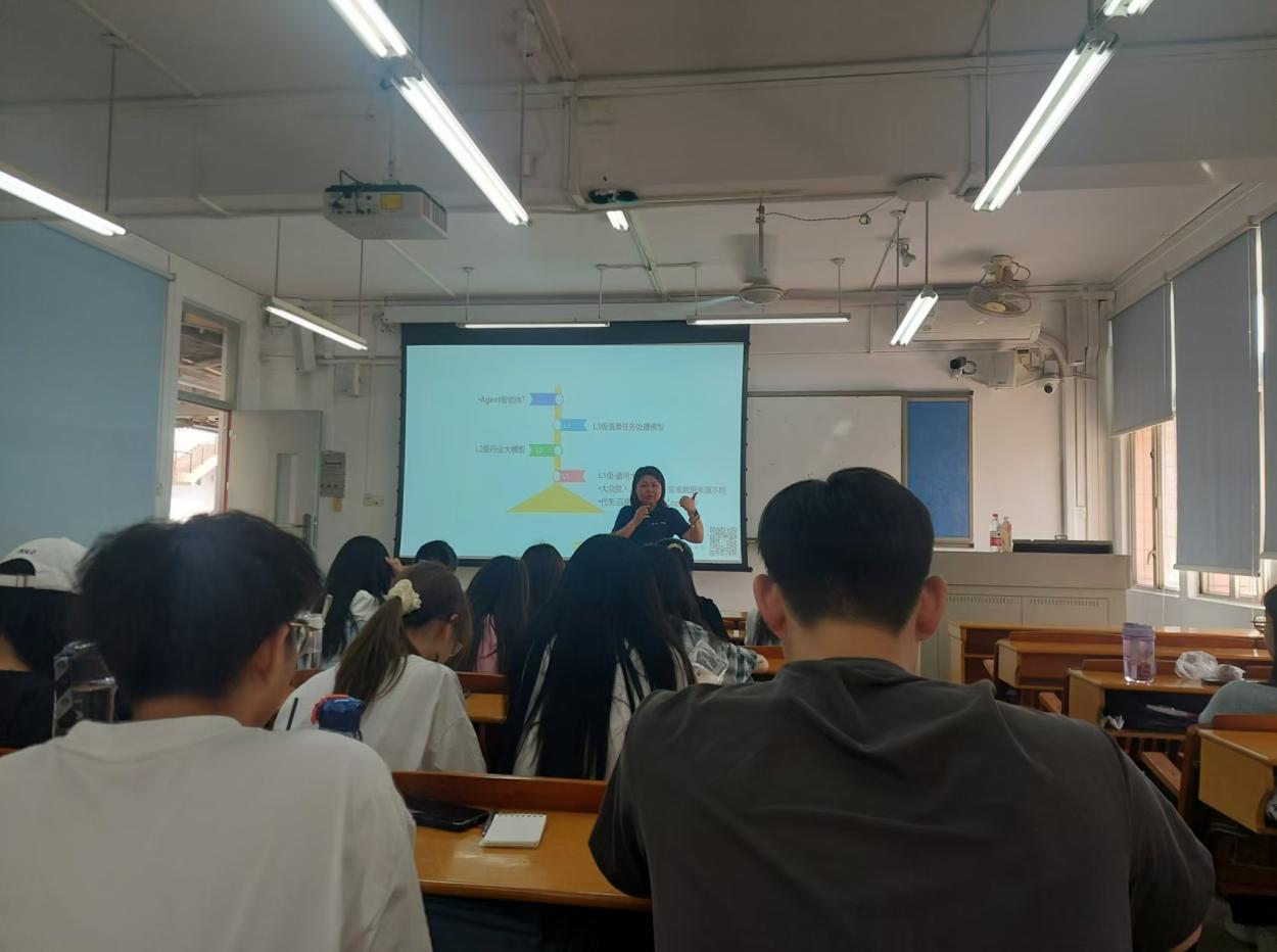 为深化校企合作协同育人,推进校外实践导师队伍建设,全面提升人才培养质量,10月16日上午,点凡企业管理服务(广州)有限公司营运总经理梁洁娜应邀在佛山校区励学楼205为劳动与社会保障(数智员工关系)专业2024级员工做了“人工智能与数智化在劳动关系、员工关系管理中的应用”讲座。讲座由系主任张士斌教授主持。