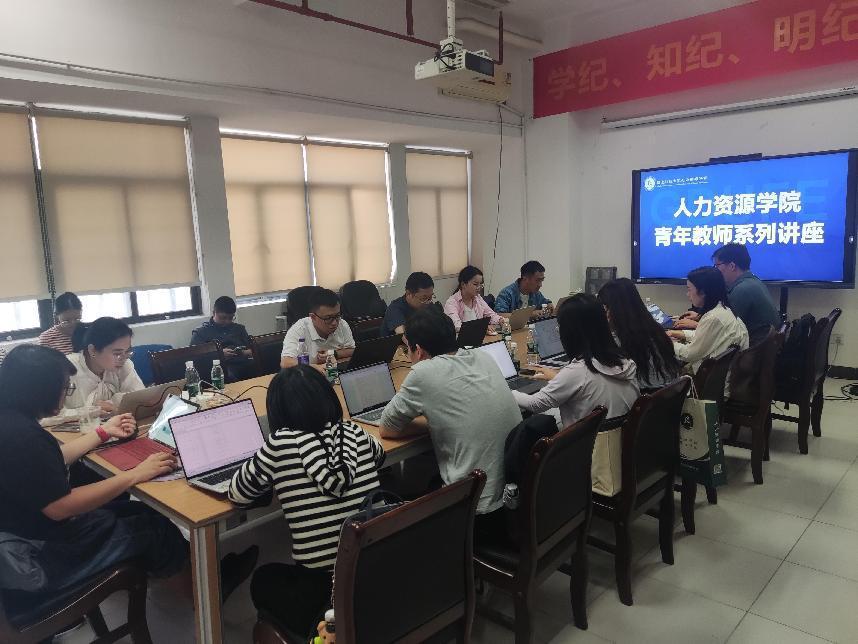 韩笑以改进环境规制为例,从政治、行政、法治等角度分析了环境规制绩效差异的内涵、生成逻辑、演化路径,并与参会教师探讨了将相关思路迁移至人才政策绩效评价研究的可行性。马银坡以企业社保缴费为例,从企业资本投资策略和劳动雇佣战略两个方面分析了企业在面对劳动保护加强背景下的反映和应对策略变化。针对相关议题,与会老师进行了热烈的讨论与交流,分享相关经验和收获。