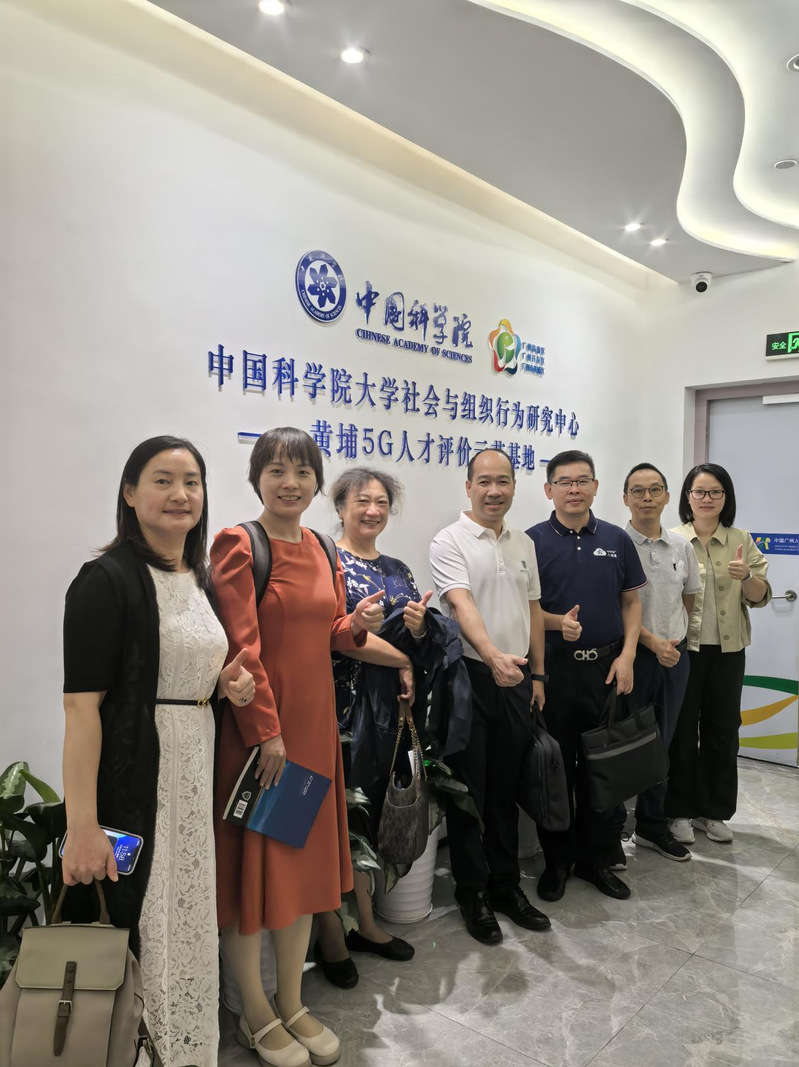 座谈会后,调研团队在谭辉等人的陪同下参观了位于广州市黄埔区人力资源产业园5楼的5G人才评价中心,并进一步交流讨论了数字化时代人力资源学科的人才培养路径。