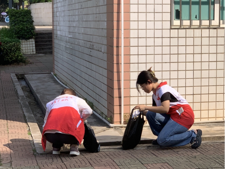 在垃圾清理活动中,志愿者们忙碌地穿梭在杏园与第一饭堂之间,不怕脏、不怕累,道路旁和绿化带散落着的垃圾,志愿者手持垃圾袋,不放过任何大大小小的的垃圾,随后一起收集到垃圾袋当中。活动过程中大家合作默契,动作熟练,不一会儿园区和校道变得干净整洁,仿佛换了新面貌。