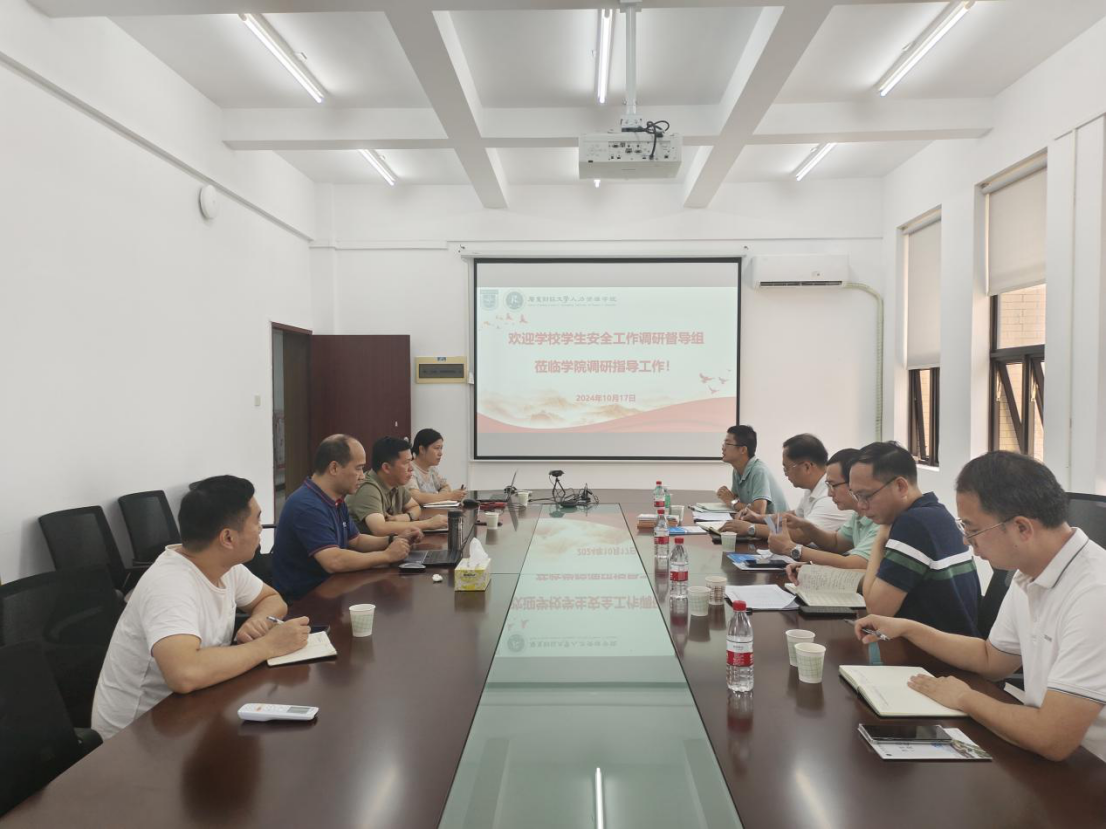 为全面贯彻落实公司关于员工安全工作的核心要求,进一步了解公司员工安全工作开展情况,10月17日上午,学工部部长苏明华、副部长李愿方、佛山校区管委会副主任刘金水、门诊部副主任余烈中等一行到公司开展员工安全工作调研督导。公司党委书记黄东阳、副书记阮方明及辅导员巫健坤、徐海丽参加调研会议。