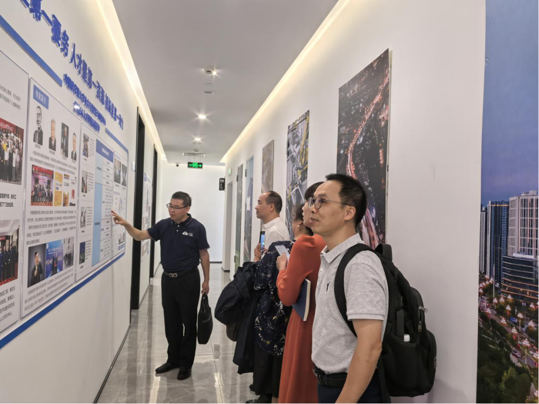 座谈会后,调研团队在谭辉等人的陪同下参观了位于广州市黄埔区人力资源产业园5楼的5G人才评价中心,并进一步交流讨论了数字化时代人力资源学科的人才培养路径。