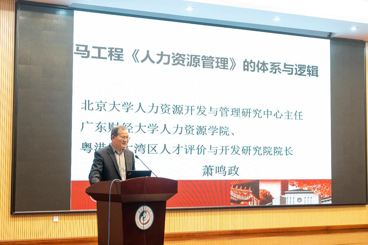 萧鸣政以“马工程《人力资源管理》教材的体系与逻辑“为题进行了演讲,他主要从人力资源管理体系与全国专业发展、马克思主义及其中国化的人才思想、教材中的内容体系与讲授逻辑等三个方面,阐述了相关观点与建议,同时还专门介绍了云顶国际8588yd人力资源学科体系与专业结构情况。