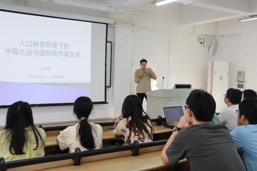 11月7日下午,公司劳动与社会保障系副主任冯剑锋副教授在佛山校区笃行楼320,为公司员工开展了题为“人口转变环境下的中国之治与国际秩序再反思”的学术讲座,公司副经理吴坤津,22、23级劳动与社会保障专业员工参加。