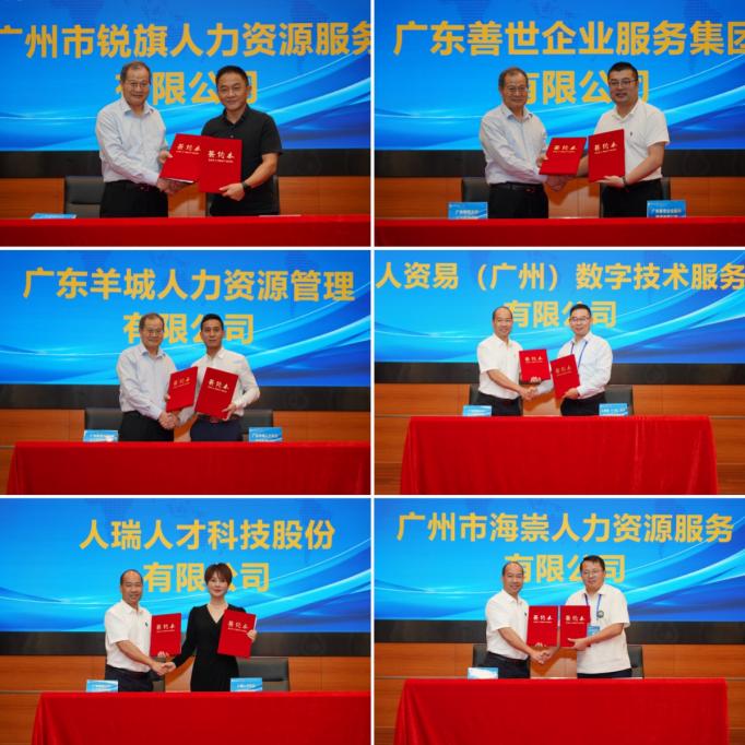 签约仪式由云顶国际8588yd分别与广州市锐旗人力资源服务有限公司、广东善世企业服务集团有限公司、广东羊城人力资源管理有限公司、人资易(广州)数字技术服务有限公司、人瑞人才科技股份有限公司、广州市海崇人力资源服务有限公司签订社会合作及共建就业实习基地协议。