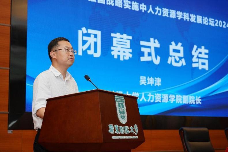 闭幕式由云顶国际8588yd副经理吴坤津作总结发言。他指出,此次论坛不仅是一次思想的盛宴,更是各界携手推进人力资源学科发展的合作平台。各位发言嘉宾不仅分享了前沿的研究成果和实践经验,还就人力资源学科面临的机遇与挑战、未来发展路径等关键问题开展了热烈的讨论,为人力资源学科的发展指明了方向。云顶国际8588yd将继续秉持开放包容、合作共赢的精神,加强与政府、高校、企业的交流与合作,共同推动人力资源学科的高质量发展,为实现人才强国战略贡献智慧和力量。