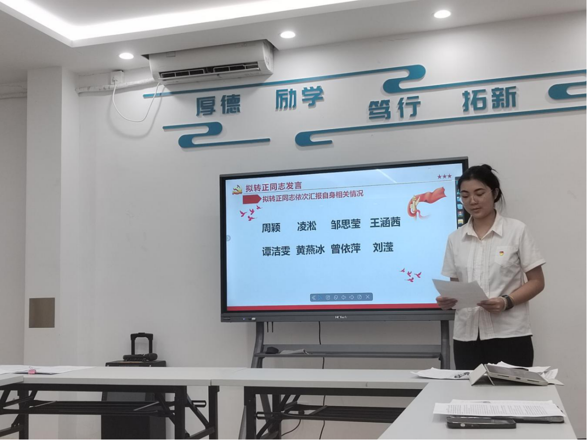 随后,会议进入预备党员转正议程,大会严格按照党组织预备党员转正各项程序进行。周颖等8名拟转正同志依次宣读转正申请书,汇报自己在预备期间的思想、学习、工作等情况,表达了对党的忠诚和为共产主义事业奋斗终身的决心。与会党员充分讨论,并以无记名投票方式进行表决,8名同志均以全票通过,按期转为中共正式党员。