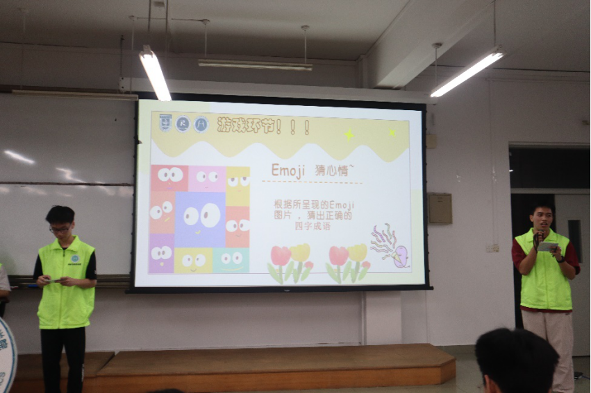 接着,活动通过互动小游戏——你画我猜与emoji猜心情进行暖场。在游戏过程中,同学们的积极参与和有趣的回答为本次活动增添了活力与热情,在这轻松愉快的氛围中,同学们也加深了彼此的了解与友谊。