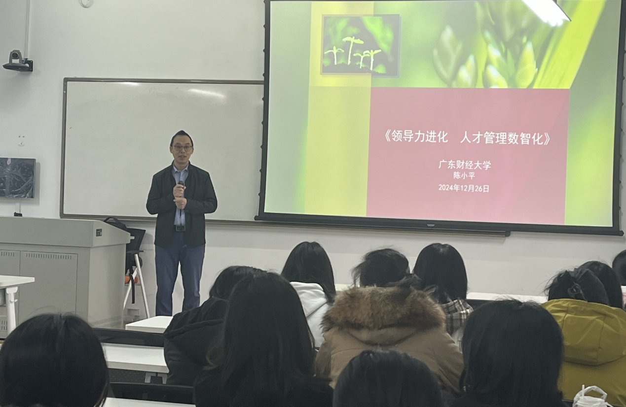 12月26日上午,公司副经理、人才工作系主任陈小平教授在佛山校区笃行楼402,为公司员工开展了题为“领导力进化与人才管理数智化”的学术讲座,24级人力资源管理(人才开发与管理方向)专业员工参加。