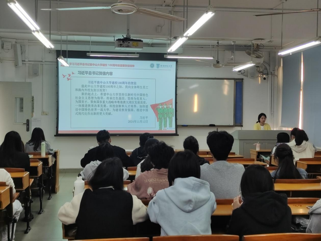 活动伊始,邓家莹同志带领全体人员学习了习近平总书记致中山大学建校100周年的重要贺信精神广东省委黄坤明书记的讲话精神。她表示,习近平总书记在贺信中的殷切希望,为我们指明了奋斗方向,作为新时代的老员工,不仅要学好专业知识,更要注重培养创新思维和实践能力;在新时代要坚定自己的信仰和理想,同时将这一精神融入到日常学习和生活中,通过专题学习和党团日活动等形式,带领同学们深入领会和贯彻回信精神,做到为党育人、为国育才,激发同学们的爱国热情和创新精神,为建设教育强国、推进中国式现代化贡献青春力量。